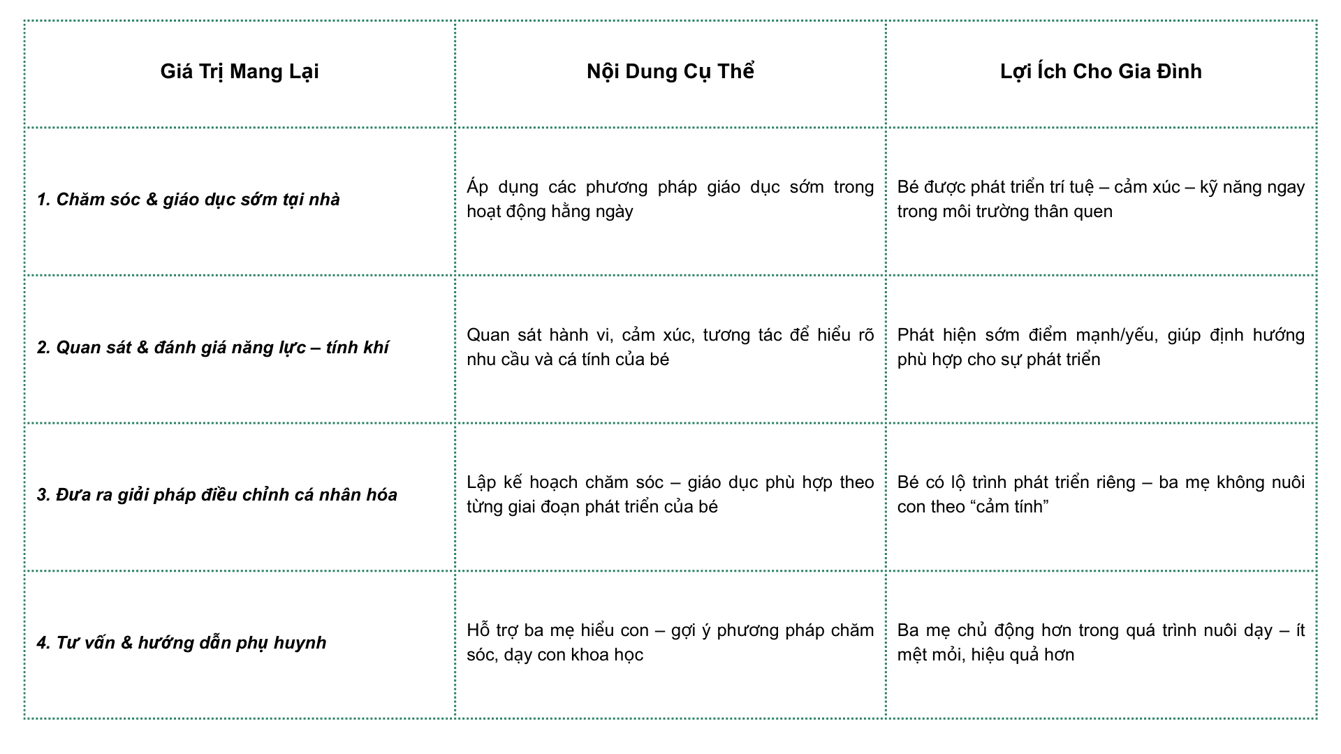 Đồng hành cùng ba mẹ, không thay thế ba mẹ – giúp việc nuôi con trở nên chủ động, nhẹ nhàng và khoa học hơn mỗi ngày