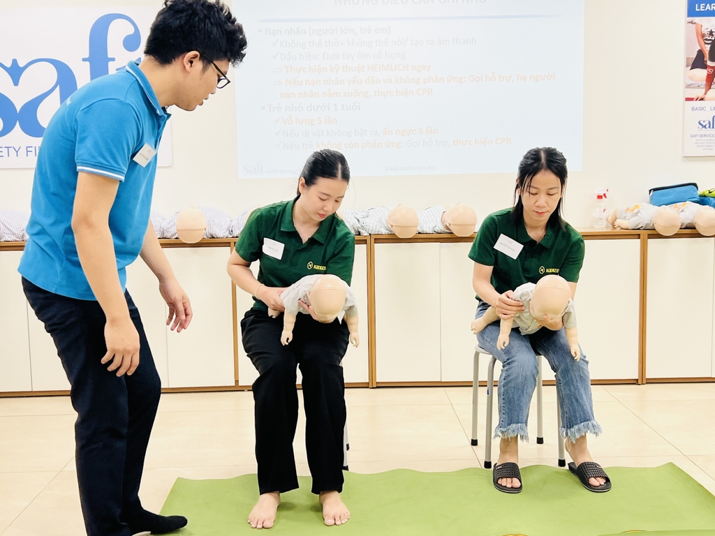 Chương trình đào tạo về sơ cấp cứu cho trẻ được tổ chức cho tất cả các bảo mẫu với những trải nghiệm bổ ích cùng giá trị vô cùng thiết thực, sau buổi đào tạo mỗi bảo mẫu đều được cấp chứng nhận theo quy định của Bộ LĐTBXH. Buổi học cung cấp các kiến thức từ cơ bản tới nâng cao, từ lý thuyết đến thực hành trực tiếp, gắn liền với từng tình huống cụ thể thường gặp trong quá trình trẻ em trưởng thành giúp bảo mẫu xử lý kịp thời và đúng cách khi trẻ sơ suất, gặp tai nạn.