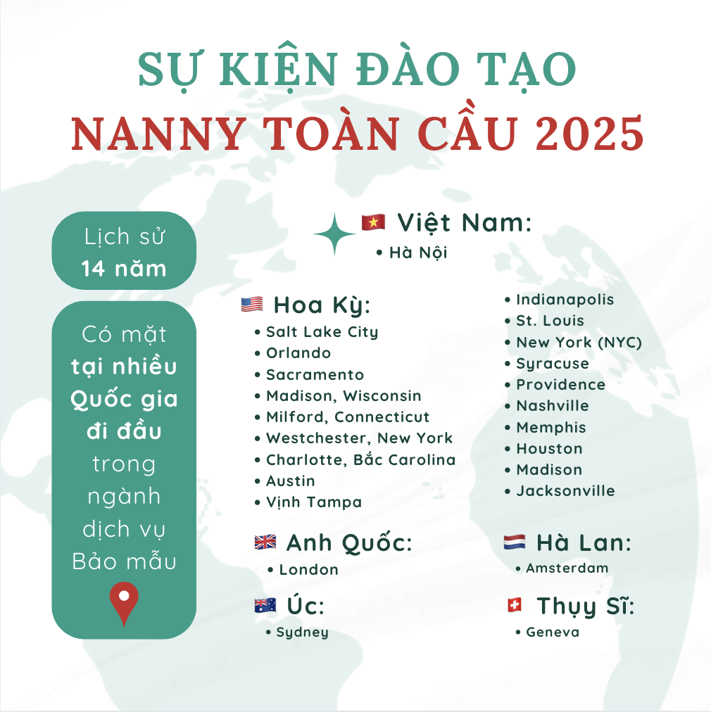 𝐈𝐍𝐓𝐄𝐑𝐍𝐀𝐓𝐈𝐎𝐍𝐀𝐋 𝐍𝐀𝐍𝐍𝐘 𝐓𝐑𝐀𝐈𝐍𝐈𝐍𝐆 𝐃𝐀𝐘 𝟐𝟎𝟐𝟓 (𝐢𝐍𝐍𝐓𝐃) chính là sự kiện dành cho các bảo mẫu, giáo viên mầm non và những người đang tìm kiếm cơ hội nâng cao kỹ năng chăm sóc trẻ chuyên nghiệp – nơi bạn có thể học hỏi, thực hành, mở rộng kết nối và nhận ngay CERTIFICATE mang tầm quốc tế!